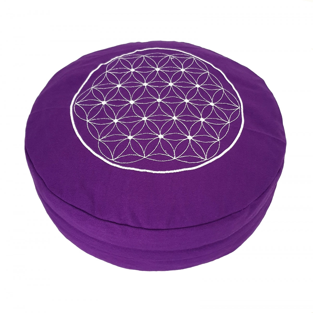 TEACHER PACK of 8 | Buckwheat Round Meditation Zafu Cushions | Embroidered Flower of Life Pattern | 2nd Ed