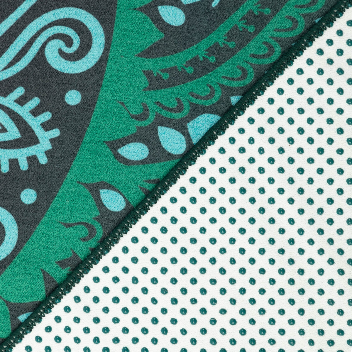 Hot Yoga Grip Towel² with anti-slip Silicone Dots | Green Mandalas print design